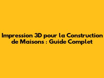Impression 3D Pour La Construction De Maisons : Guide Complet