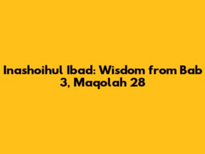 Alright, guys, let's dive deep into Inashoihul Ibad, specifically Bab 3, Maqolah 28. This section is packed with insightful guidance and timeless wisdom. We're going to break it down, explore its meanings, and see how we can apply these teachings to our daily lives. Think of this as a friendly exploration, making complex ideas accessible and relatable. So, grab your favorite beverage, get comfy, and let's get started!