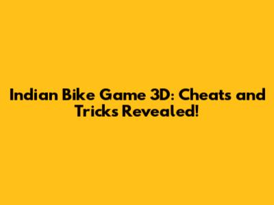 Indian Bike Game 3D: Cheats And Tricks Revealed!