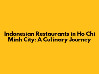 Indonesian Restaurants In Ho Chi Minh City: A Culinary Journey