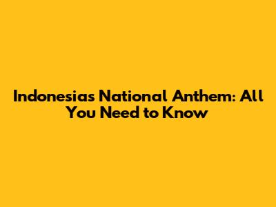 Indonesia's National Anthem: All You Need To Know