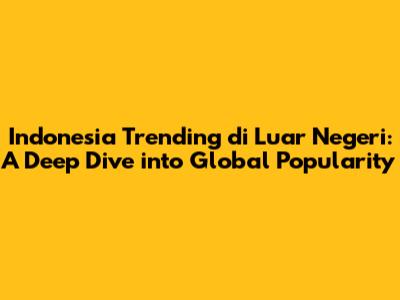Hey guys! Ever wondered why Indonesia is suddenly popping up everywhere? Well, you're not alone! It seems like the world is finally waking up to the amazing things this country has to offer. From its stunning landscapes and rich culture to its vibrant economy and delicious cuisine, Indonesia is seriously trending! Let's dive deep into why this is happening and what it means. We'll explore the various factors contributing to Indonesia's growing global appeal, the impact of this newfound popularity, and what the future holds for this Southeast Asian gem. Buckle up, because we're about to take a fascinating journey into the heart of Indonesia's trending status!