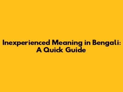 Inexperienced Meaning In Bengali: A Quick Guide