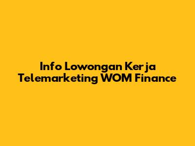 Info Lowongan Kerja Telemarketing WOM Finance