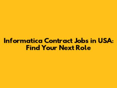 Informatica Contract Jobs In USA: Find Your Next Role