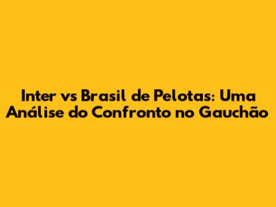 Inter Vs Brasil De Pelotas: O Duelo No Gauchão