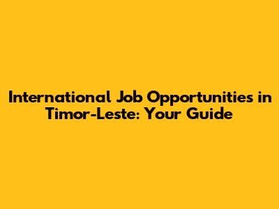 International Job Opportunities In Timor-Leste: A Comprehensive Guide