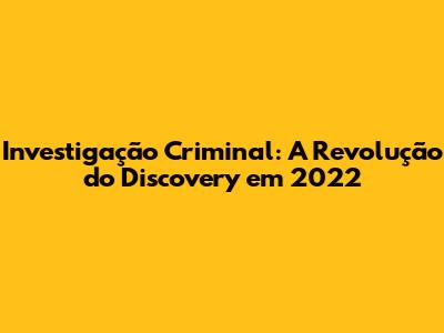 Investigação Criminal: A Revolução Do Discovery Em 2022