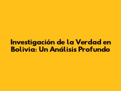 Investigación De La Verdad En Bolivia: Un Análisis Profundo