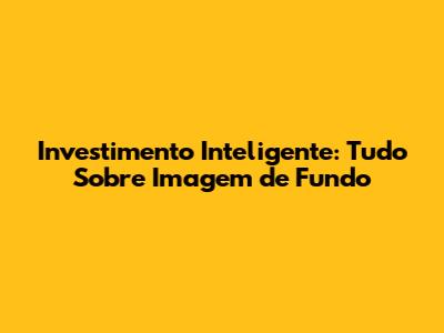 Investimento Inteligente: Tudo Sobre Imagem De Fundo