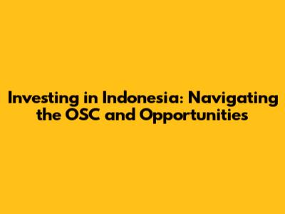Investing In Indonesia: Navigating The OSC And Opportunities