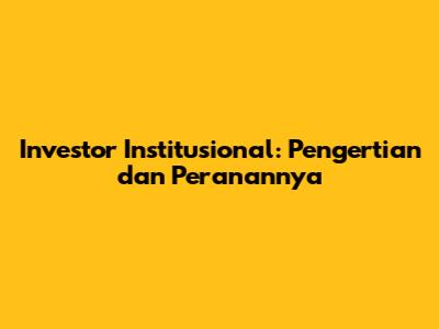 Investor Institusional: Pengertian Dan Peranannya