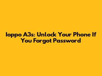 Ioppo A3s: Unlock Your Phone If You Forgot Password