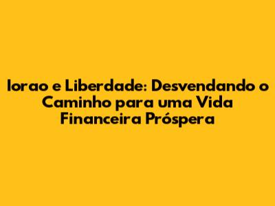 Iorao E Liberdade: Como Conquistar Sua Vida Financeira