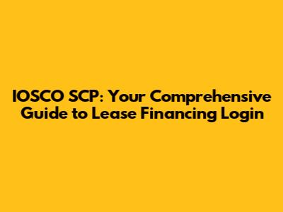 Hey guys! Navigating the world of lease financing can sometimes feel like trying to solve a complex puzzle, especially when dealing with specific platforms like IOSCO SCP. But don't worry, we're here to break it down for you. This guide will walk you through everything you need to know about IOSCO SCP and how to log in smoothly, ensuring you can manage your lease financing without a headache. Let's dive in!