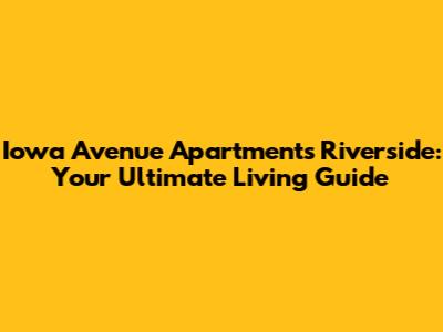 Iowa Avenue Apartments: Your Riverside Living Guide