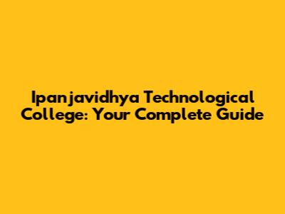 Ipanjavidhya Technological College: Everything You Need To Know
