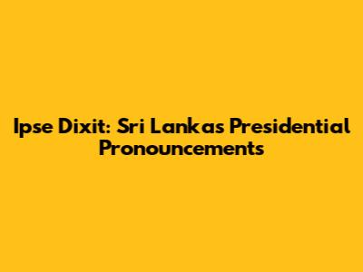 Ipse Dixit: Sri Lanka's Presidential Pronouncements