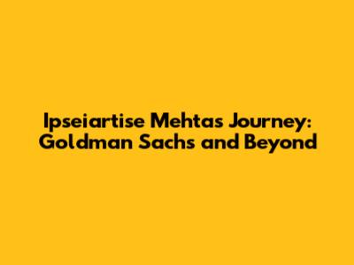Ipseiartise Mehta's Journey: Goldman Sachs And Beyond