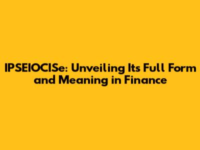IPSEIOCISe: Decoding Its Full Form And Significance In Finance
