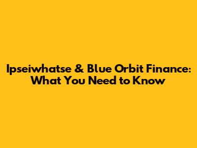 Ipseiwhatse & Blue Orbit Finance: What You Need To Know