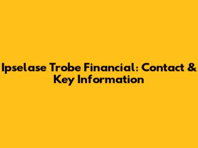 Ipselase Trobe Financial: Contact & Key Information