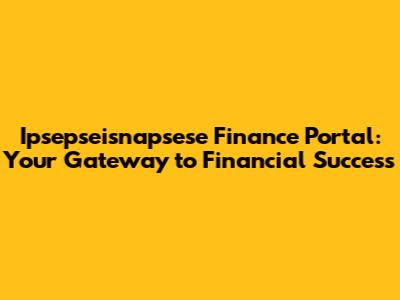 Ipsepseisnapsese Finance Portal: Your Gateway To Financial Success