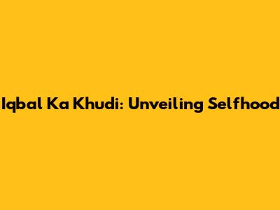 Iqbal Ka Khudi: Unveiling Selfhood