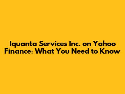 Hey guys! Ever wondered about Iquanta Services Inc. and what the buzz is all about, especially when it comes to financial news sites like Yahoo Finance? Well, you've come to the right place. We're going to dive deep into what Iquanta Services Inc. is, what they do, and how you might find information about them on a platform like Yahoo Finance. It's not every day you see a company making waves, and understanding their position in the market can be super insightful, whether you're an investor, a curious student, or just someone trying to keep up with the business world. Yahoo Finance is a go-to spot for market data, company profiles, and financial news, so if Iquanta Services Inc. is making moves, it's likely to show up there. Let's break down what makes this company tick and why its financial performance might be of interest to the wider investment community. We'll explore its business model, its recent performance indicators, and how it stacks up against competitors, all with an eye on how this information is presented and interpreted through the lens of financial journalism and data aggregation. Understanding these elements is key to grasping the company's potential and its current standing in the industry. So, buckle up, and let's get started on unraveling the story of Iquanta Services Inc. through the eyes of Yahoo Finance.