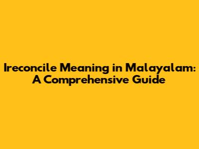 Ireconcile Meaning In Malayalam: A Comprehensive Guide