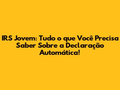 Olá, pessoal! Se você é jovem, está começando a vida profissional e precisa lidar com o Imposto de Renda (IRS), este guia é para você! Vamos falar sobre o IRS Jovem e, em especial, sobre a Declaração Automática, que pode simplificar muito a sua vida. Preparados? Então, vamos lá!