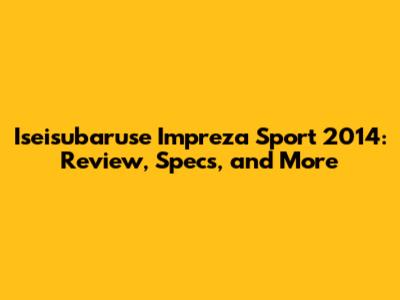 Hey guys! Today, we're diving deep into the Iseisubaruse Impreza Sport 2014. If you're in the market for a reliable, sporty, and versatile ride, this might just be the car you've been searching for. Let’s break down everything you need to know, from its performance and features to its overall value.