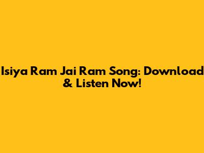 Isiya Ram Jai Ram Song: Download & Listen Now!