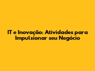 IT E Inovação: Atividades Para Impulsionar Seu Negócio