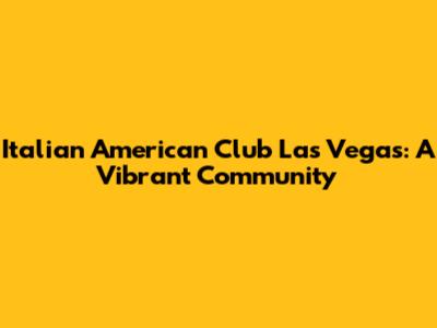 Italian American Club Of Las Vegas: A Vibrant Community