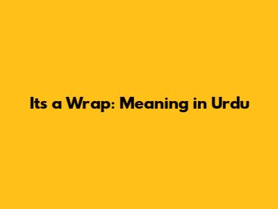 It's A Wrap: Meaning In Urdu