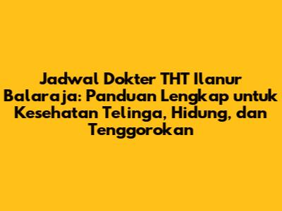 Jadwal Dokter THT Ilanur Balaraja, guys! Kalian semua pasti pernah kan mengalami masalah seputar telinga, hidung, atau tenggorokan? Nah, artikel ini hadir untuk membantu kalian menemukan jadwal dokter THT (Telinga, Hidung, Tenggorokan) terbaik di Ilanur Balaraja. Kita akan bahas secara detail, mulai dari daftar dokter, jadwal praktik, hingga tips memilih dokter THT yang tepat. Jadi, simak terus ya!