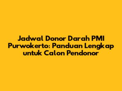 Untuk memudahkan masyarakat yang ingin berpartisipasi, Palang Merah Indonesia (PMI) Purwokerto secara rutin menyelenggarakan kegiatan donor darah di berbagai lokasi. Jadwal donor darah PMI Purwokerto biasanya meliputi: