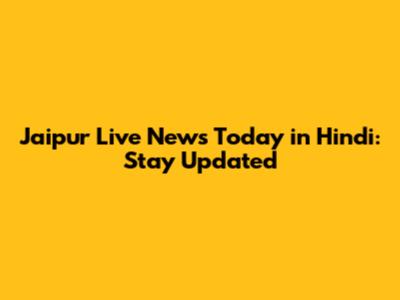 Jaipur Live News Today: Latest Updates In Hindi
