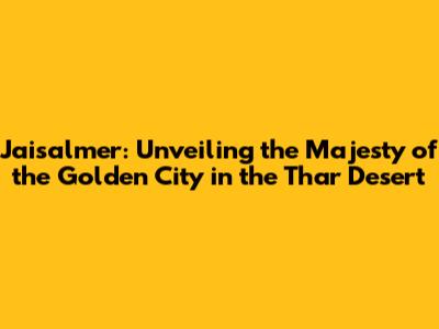 Jaisalmer: The Golden City Of The Thar Desert