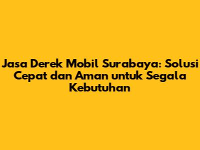 Jasa Derek Mobil Surabaya: Solusi Cepat & Aman