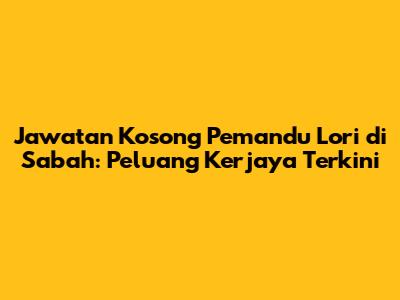 Jawatan Kosong Pemandu Lori Di Sabah: Peluang Kerjaya Terkini