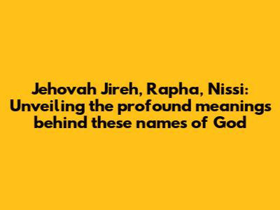 Hey everyone! Have you ever wondered about the powerful names we sometimes hear associated with God? Specifically, names like Jehovah Jireh, Jehovah Rapha, and Jehovah Nissi? These aren't just random titles; they're loaded with deep meaning and reveal different aspects of God's character and provision. Let's dive in and unpack what each of these names signifies, showing us how multifaceted and amazing God truly is. Understanding these names can bring us closer to God, enriching our prayer life and deepening our appreciation for His nature. Ready to explore the rich tapestry of God's names and discover the comfort and strength they offer? Let's get started!