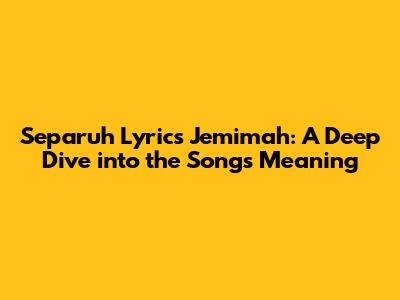 Hey guys! Ever found yourself humming a tune and thinking, "Wow, this song really gets me"? Well, for many, that song is Jemimah's "Separuh." This track isn't just a collection of catchy melodies; it's a poignant exploration of love, loss, and the lingering echoes of a relationship that once was. Let's dive deep into the lyrics of "Separuh" and uncover the emotional narrative woven within.
