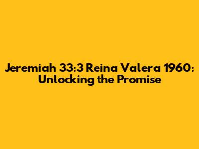 Hey guys! Ever stumble upon a verse in the Bible that just sticks with you? For many, Jeremiah 33:3 in the Reina Valera 1960 version is one of those verses. It’s powerful, it’s promising, and it’s packed with meaning. Let's dive deep into this scripture, break it down, and see how it speaks to us today.