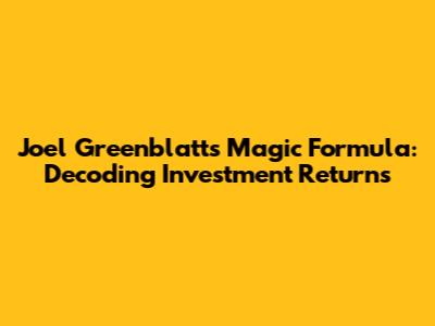Joel Greenblatt's Magic Formula: Decoding Investment Returns