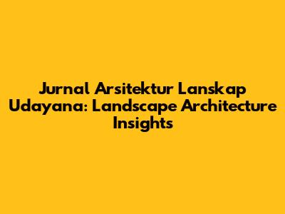 Jurnal Arsitektur Lanskap Udayana: Landscape Architecture