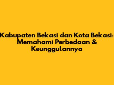 - Bagaimana cara membedakan keduanya? Perhatikan batas wilayah, struktur pemerintahan, dan karakteristik pembangunan. Kabupaten Bekasi memiliki wilayah yang lebih luas dan bupati sebagai kepala daerah, sedangkan Kota Bekasi lebih kecil dan dipimpin oleh wali kota.