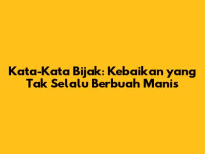 Kata-Kata Bijak: Kebaikan Yang Tak Selalu Berbuah Manis