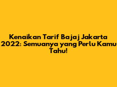 Guys, kalau kalian sering naik bajaj di Jakarta, pasti penasaran kan sama kenaikan tarif bajaj Jakarta 2022? Nah, artikel ini bakal kasih kalian info lengkap dan terbaru seputar harga bajaj 2022, perubahan tarif, hingga tips hemat naik bajaj. Jadi, simak terus ya!